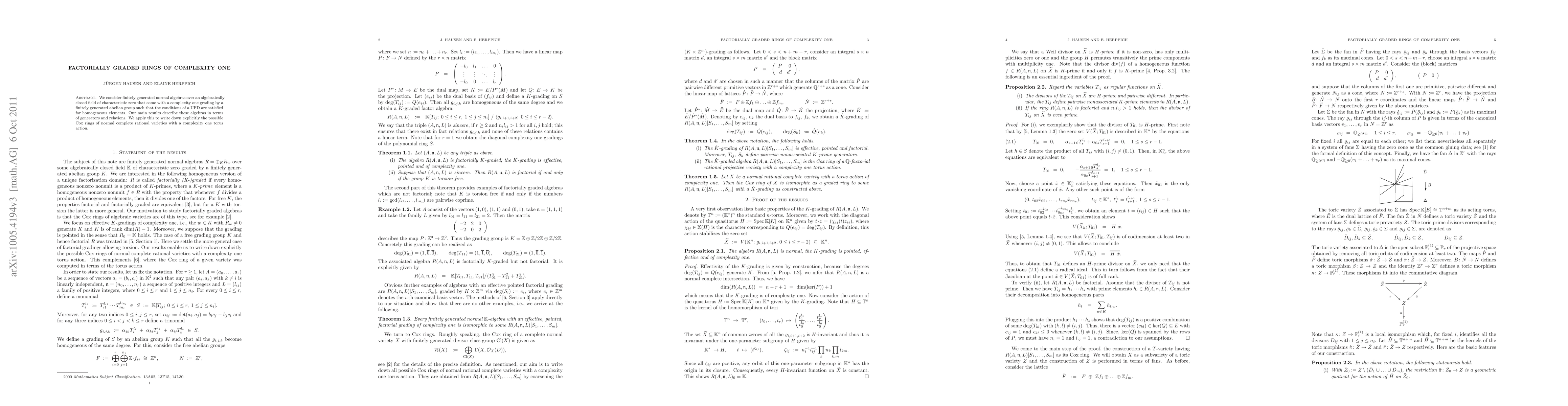 This paper explores finitely generated normal algebras with complexity one grading by a finitely generated abelian group, satisfying UFD conditions for homogeneous elements. The authors provide explicit descriptions of these algebras in terms of generators and relations, and apply this to determine the Cox rings of normal complete rational varieties with a complexity one torus action.