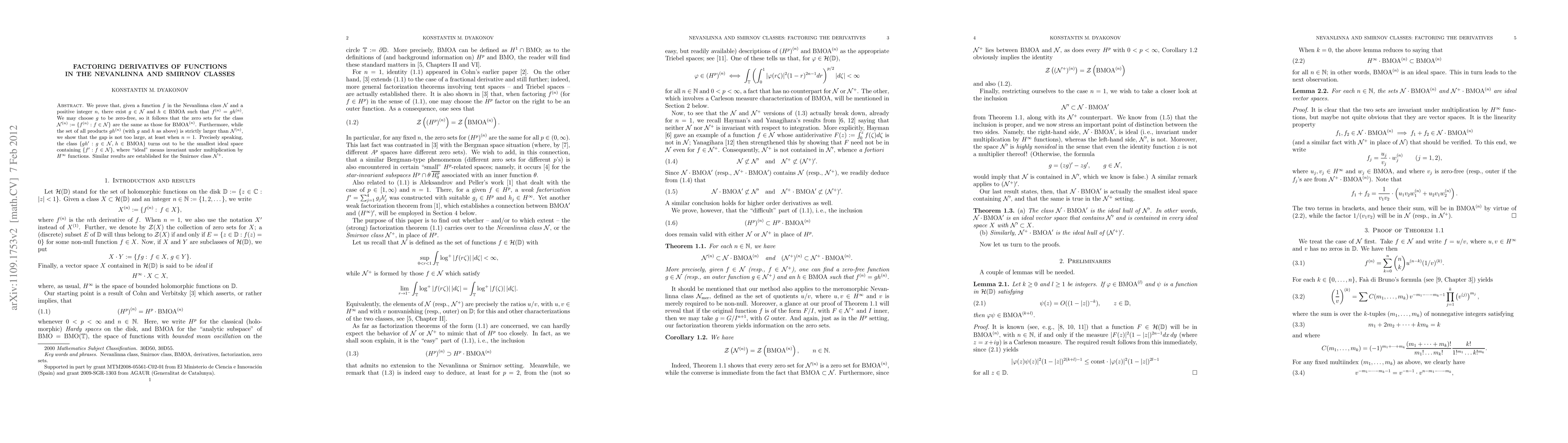 The paper proves that derivatives of functions in the Nevanlinna class can be factored into a product of a function from the Nevanlinna class and a function from the BMOA class, with implications for ideal spaces containing these classes.