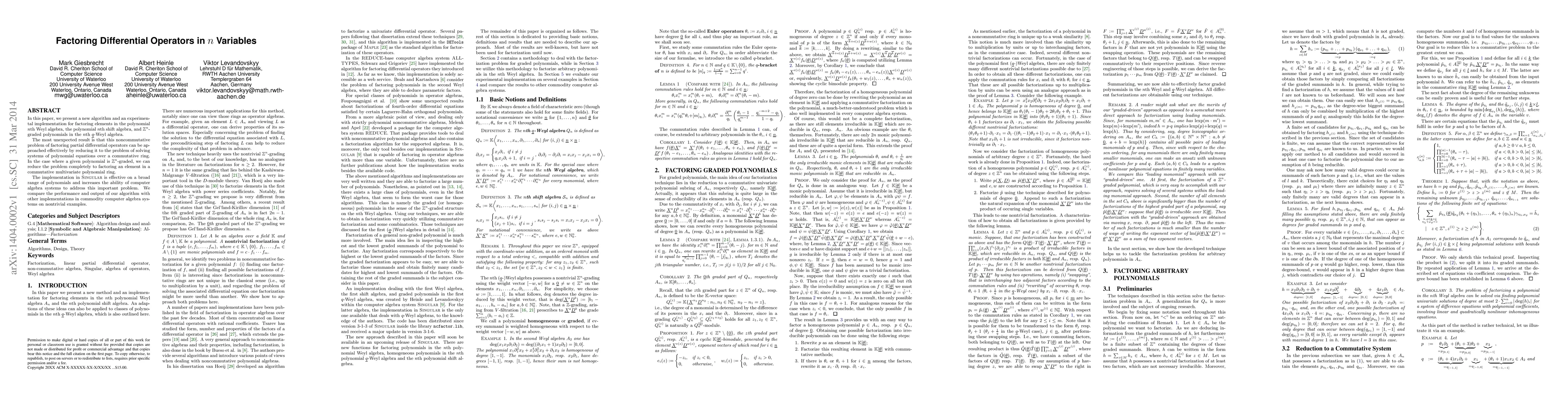 In this paper, we present a new algorithm and an experimental implementation for factoring elements in the polynomial n'th Weyl algebra, the polynomial n'th shift algebra, and ZZ^n-graded polynomials in the n'th q-Weyl algebra. The most unexpected result is that this noncommutative problem of factoring partial differential operators can be approached effectively by reducing it to the problem of solving systems of polynomial equations over a commutative ring. In the case where a given polynomial is ZZ^n-graded, we can reduce the problem completely to factoring an element in a commutative multivariate polynomial ring. The implementation in Singular is effective on a broad range of polynomials and increases the ability of computer algebra systems to address this important problem. We compare the performance and output of our algorithm with other implementations in commodity computer algebra systems on nontrivial examples.