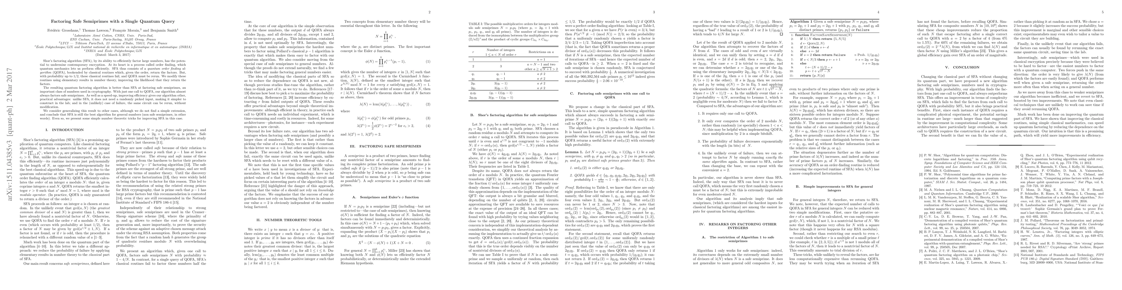 Researchers improved a quantum algorithm to factor safe semiprimes with just one query, offering a speed-up and simplification over the current best method.