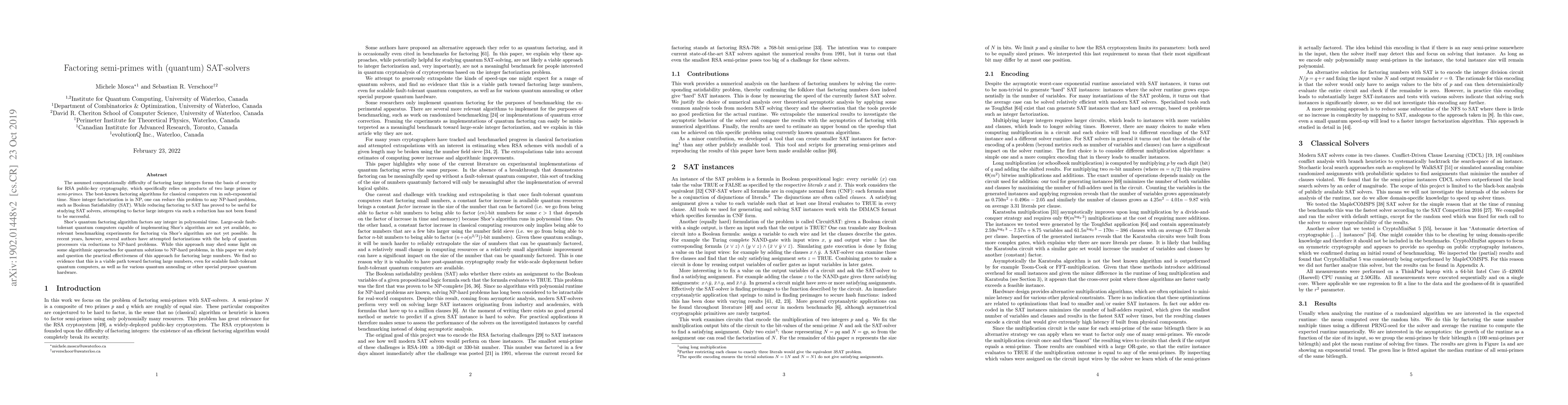 This paper investigates the use of quantum SAT-solvers for factoring semi-primes, finding no practical evidence that this approach can factor large numbers, even with scalable quantum hardware. The study questions the viability of this method despite its potential for exploring quantum solutions to NP-hard problems.