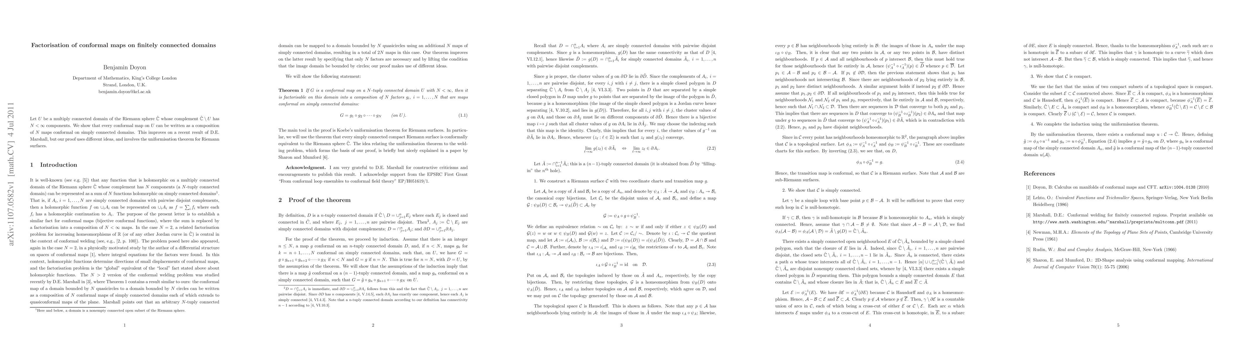 Let $U$ be a multiply connected domain of the Riemann sphere $\hat{C}$ whose complement $\hat{C}\setminus U$ has $N<\infty$ components. We show that every conformal map on $U$ can be written as a composition of $N$ maps conformal on simply connected domains. This improves on a recent result of D.E. Marshall, but our proof uses different ideas, and involves the uniformisation theorem for Riemann surfaces.