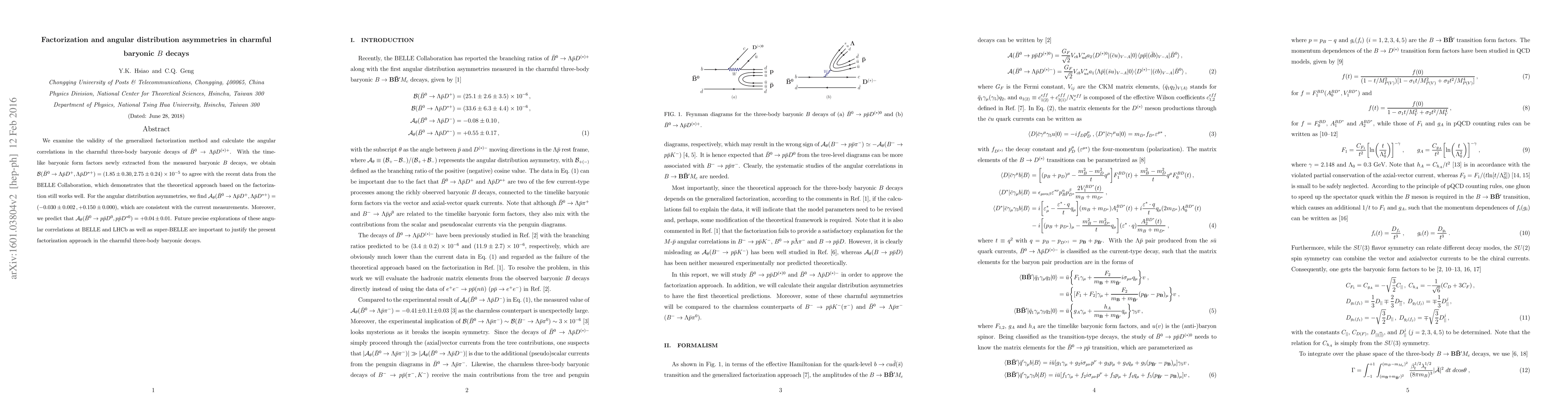 This paper evaluates the generalized factorization method in charmful baryonic $B$ decays, specifically $\bar B^0\to \Lambda \bar p D^{(*)+}$. The calculated branching fractions and angular distribution asymmetries align well with recent BELLE data, confirming the validity of the factorization approach. Future detailed studies at BELLE, LHCb, and super-BELLE are suggested to further validate these theoretical predictions.