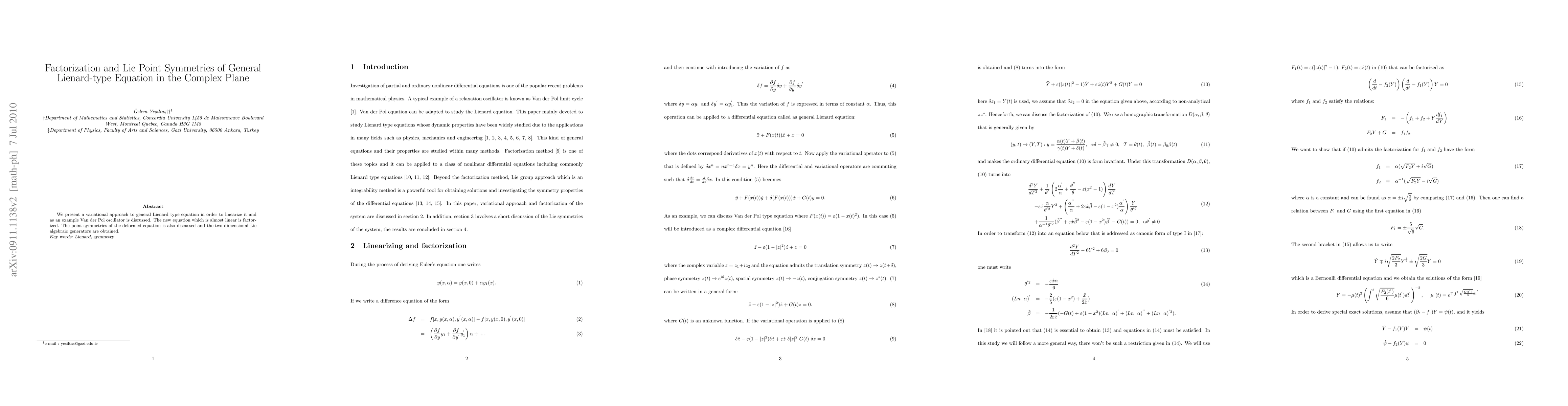 Researchers used a variational approach to linearize a general Lienard-type equation, resulting in a nearly linear form that can be factorized and analyzed for point symmetries.