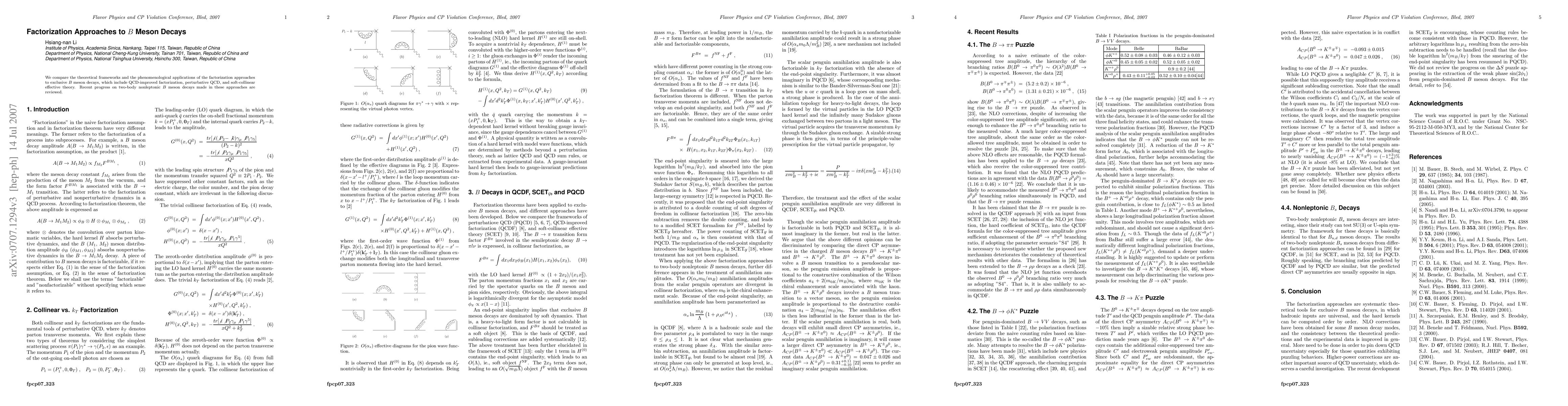 We compare the theoretical frameworks and the phenomenological applications of the factorization approaches to exclusive $B$ meson decays, which include QCD-improved factorization, perturbative QCD, and soft-collinear effective theory. Recent progress on two-body nonleptonic $B$ meson decays made in these approaches are reviewed.