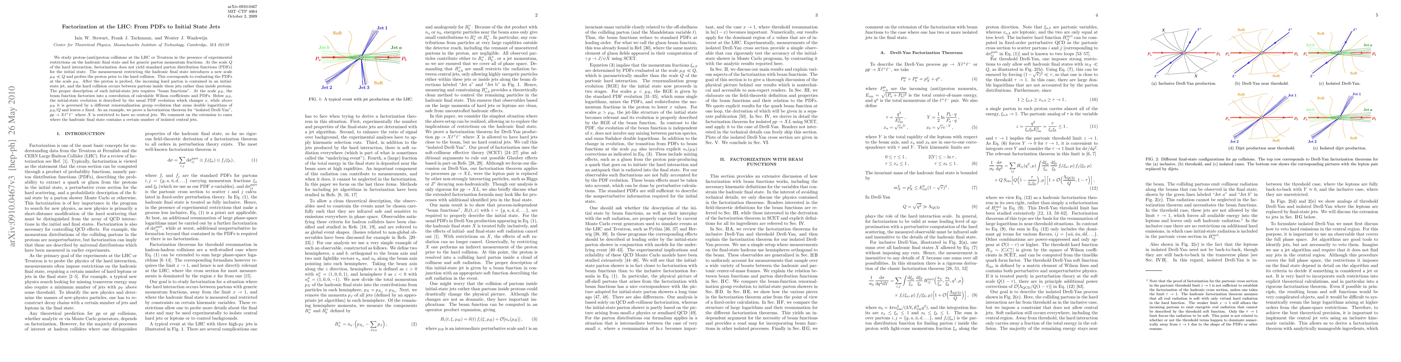 This paper explores proton-(anti)proton collisions at the LHC/Tevatron under experimental final state restrictions, revealing that factorization at the hard interaction scale does not yield standard parton distribution functions (PDFs). Instead, it introduces a new scale \mu_B that probes the proton before the collision, necessitating "beam functions" to describe initial-state jets.