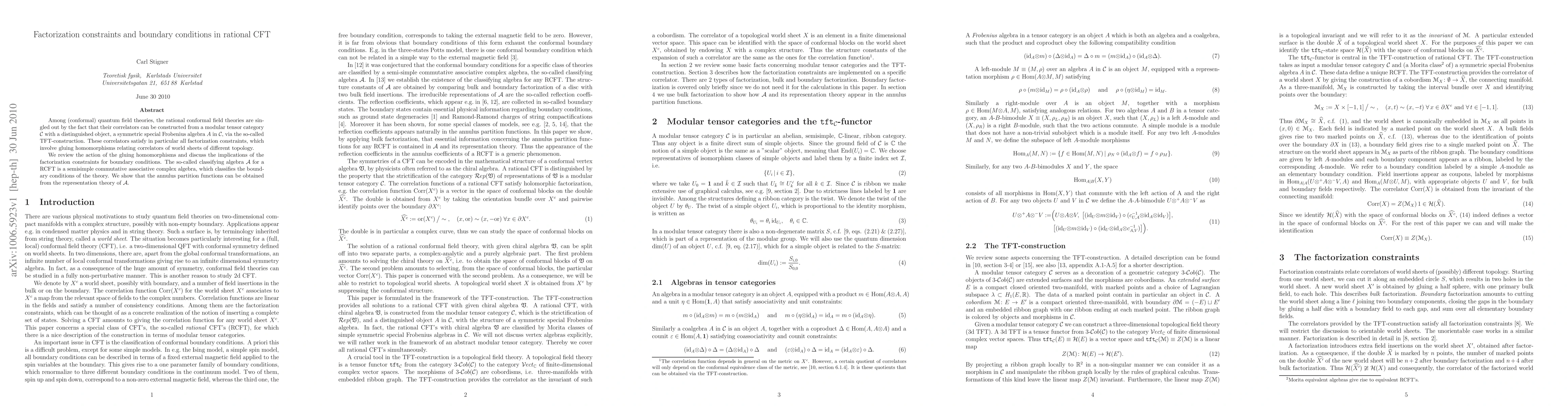 This paper discusses rational conformal field theories (RCFTs), highlighting that their correlators can be built using a modular tensor category and a special Frobenius algebra via the TFT-construction. It reviews gluing homomorphisms, factorization constraints, and their implications for boundary conditions. The classifying algebra A for RCFTs is shown to classify boundary conditions, and annulus partition functions are derived from its representation theory.