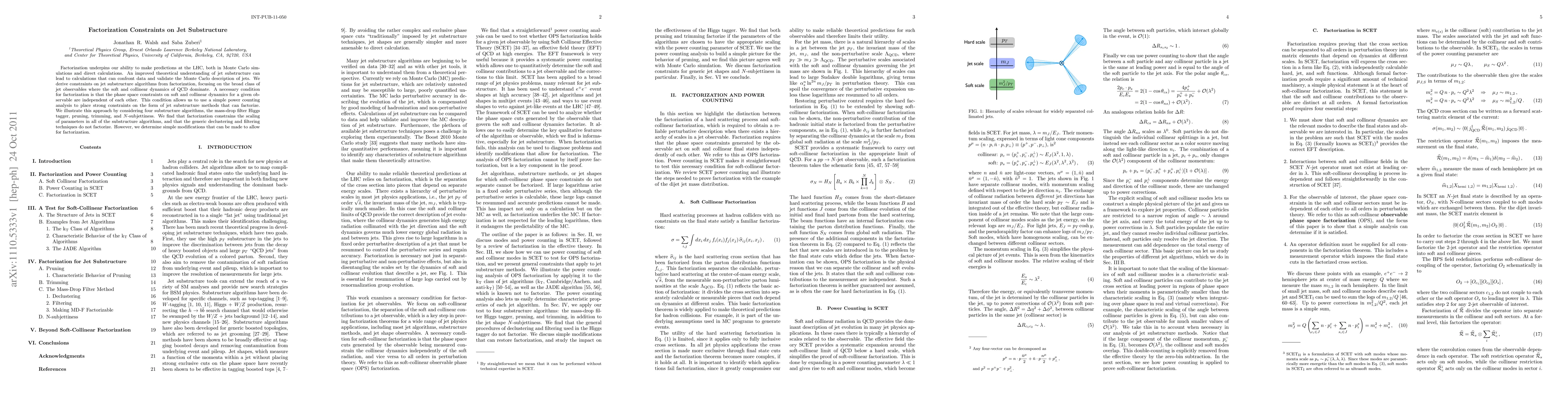 Factorization underpins our ability to make predictions at the LHC, both in Monte Carlo simulations and direct calculations. An improved theoretical understanding of jet substructure can lead to calculations that can confront data and validate the Monte Carlo description of jets. We derive constraints on jet substructure algorithms from factorization, focusing on the broad class of jet observables where the soft and collinear dynamics of QCD dominate. A necessary condition for factorization is that the phase space constraints on soft and collinear dynamics for a given observable are independent of each other. This condition allows us to use a simple power counting analysis to place strong constraints on the form of jet substructure methods that can factorize. We illustrate this approach by considering four substructure algorithms, the mass-drop filter Higgs tagger, pruning, trimming, and N-subjettiness. We find that factorization constrains the scaling of parameters in all of the substructure algorithms, and that the generic declustering and filtering techniques do not factorize. However, we determine simple modifications that can be made to allow for factorization.