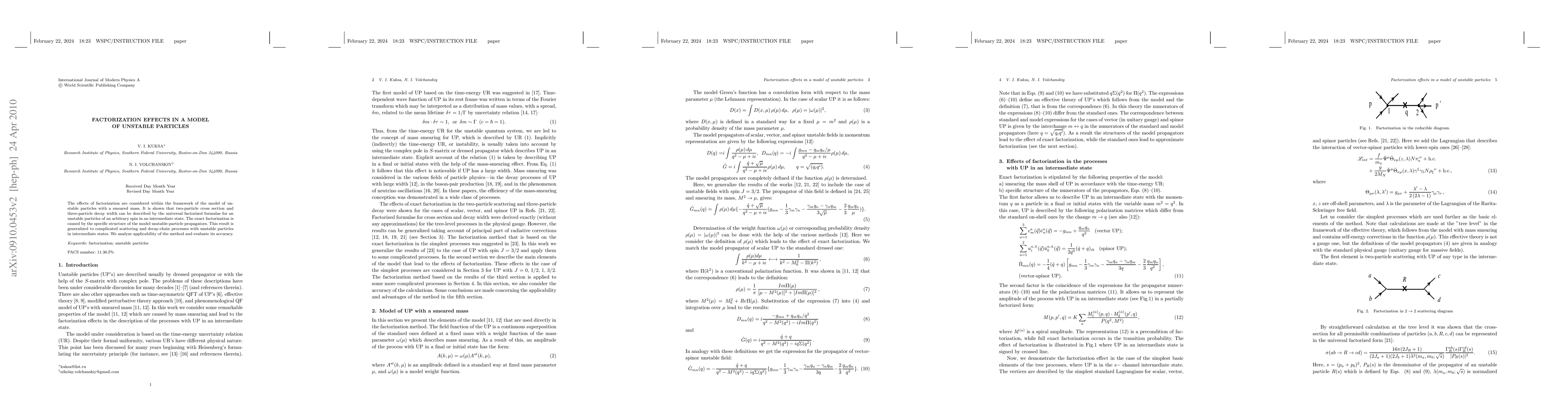 This paper investigates factorization effects in a model of unstable particles with smeared mass, demonstrating that universal factorized formulae describe two-particle cross sections and three-particle decay widths for particles of any spin in intermediate states. The study generalizes these results to complex scattering and decay-chain processes, analyzing the method's applicability and accuracy.