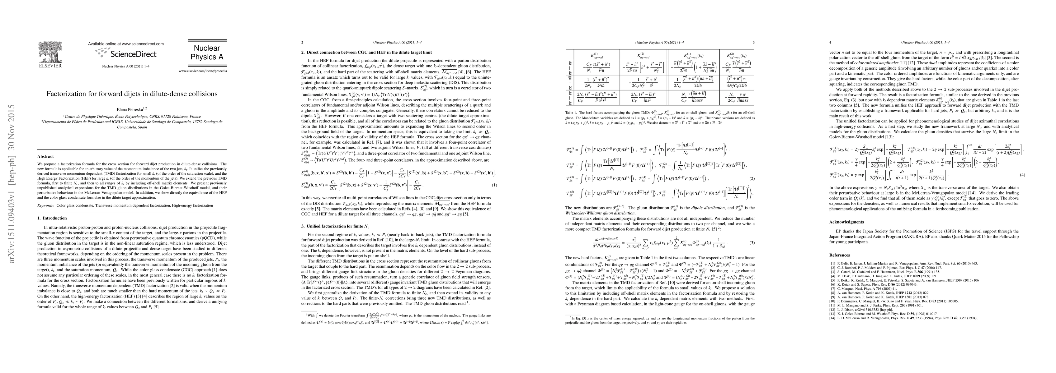 This paper proposes a new factorization formula for forward dijet production in dilute-dense collisions, unifying transverse momentum dependent and High Energy Factorization approaches across all jet momentum imbalances. It also presents analytical expressions for TMD gluon distributions and demonstrates the equivalence of HEF and color glass condensate models.