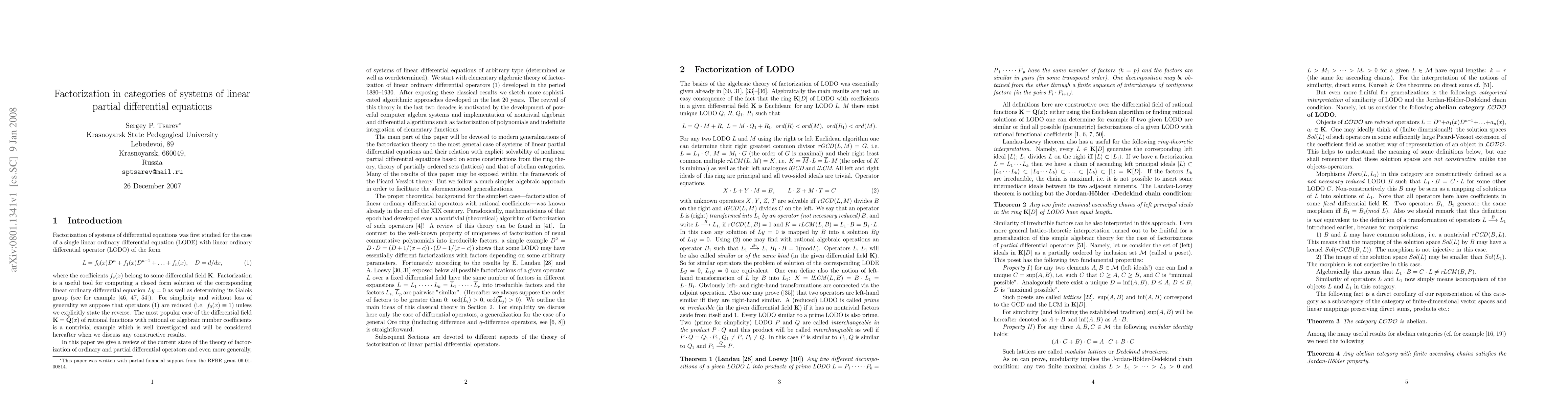 This paper reviews classical and modern approaches to factorization in linear ordinary differential equations and extends these ideas to systems of linear partial differential equations, exploring their implications for the solvability of nonlinear partial differential equations through abelian categories.