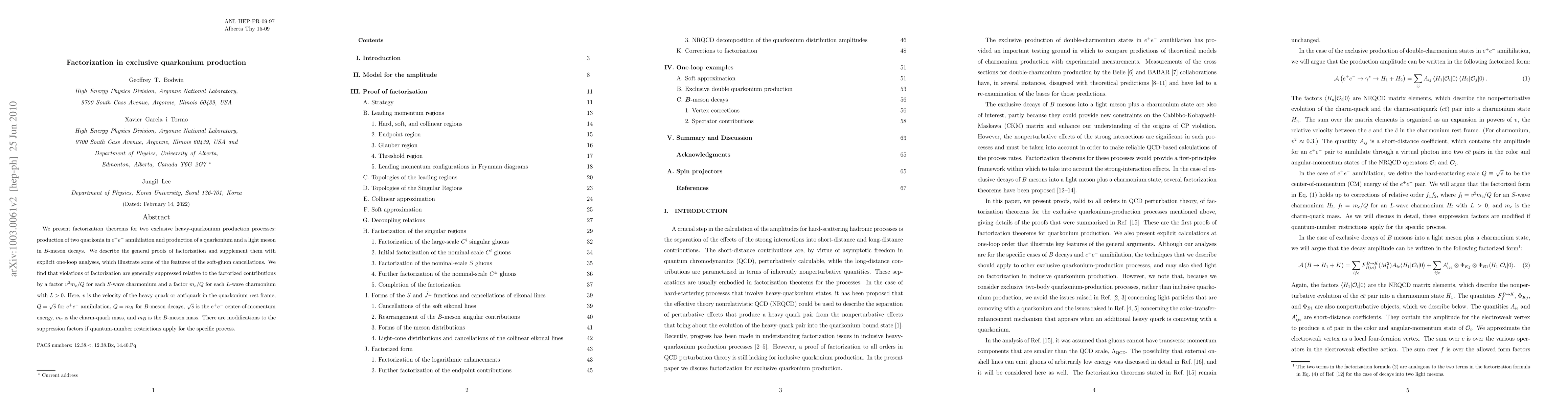 This paper presents factorization theorems for exclusive heavy-quarkonium production in e^+e^- annihilation and B-meson decays, showing that factorization violations are generally suppressed by factors involving charm-quark mass and velocity. The study includes explicit one-loop analyses to illustrate soft-gluon cancellations.
