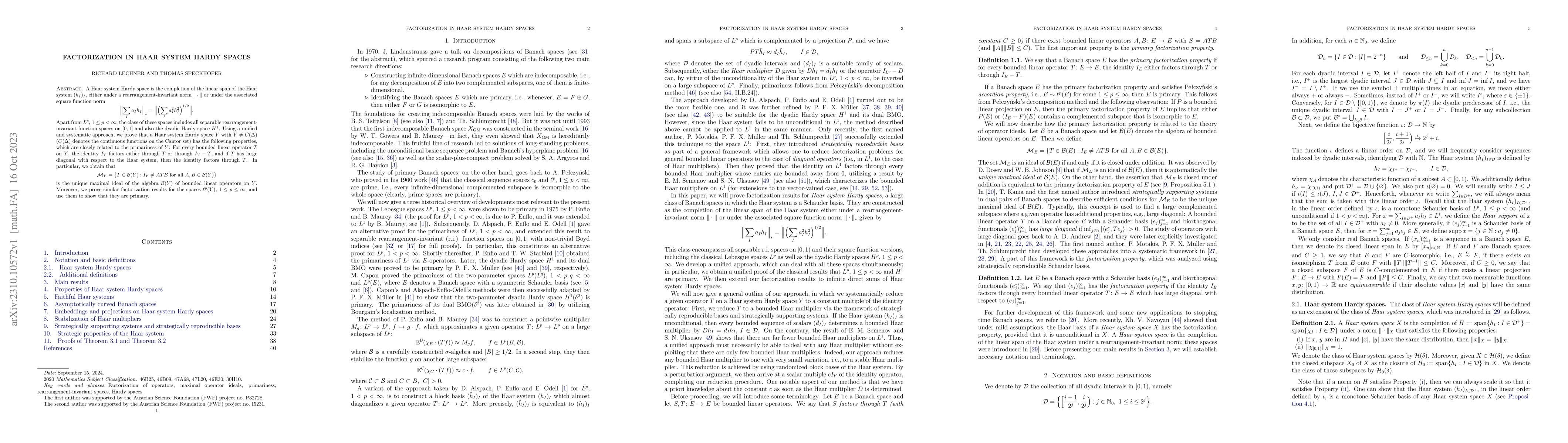 The paper presents a comprehensive proof of factorization properties for bounded linear operators in Haar system Hardy spaces, introducing a systematic approach that could be generalized to other function spaces.