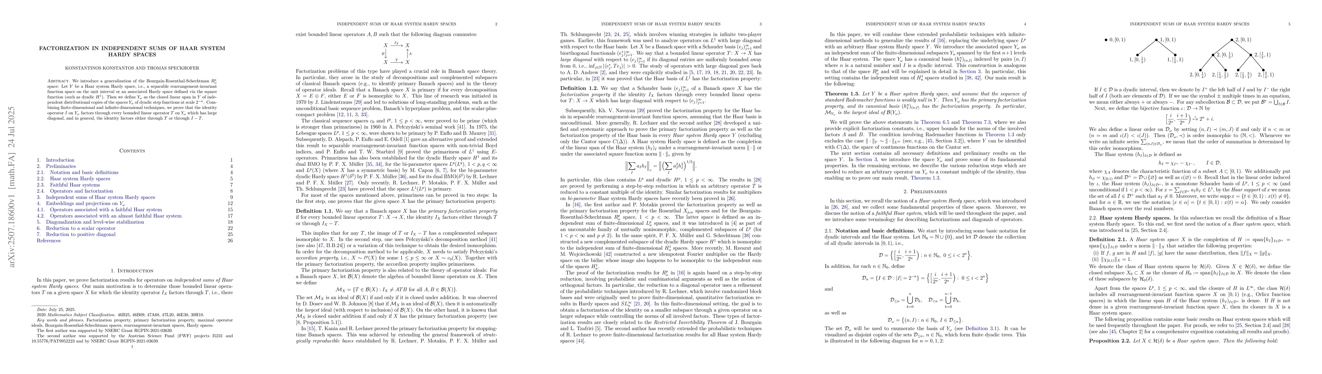 The paper presents novel insights into the structure of subspaces within Banach spaces, particularly focusing on conditions for operator factorization and the behavior of bi-parameter Haar system Hardy spaces.