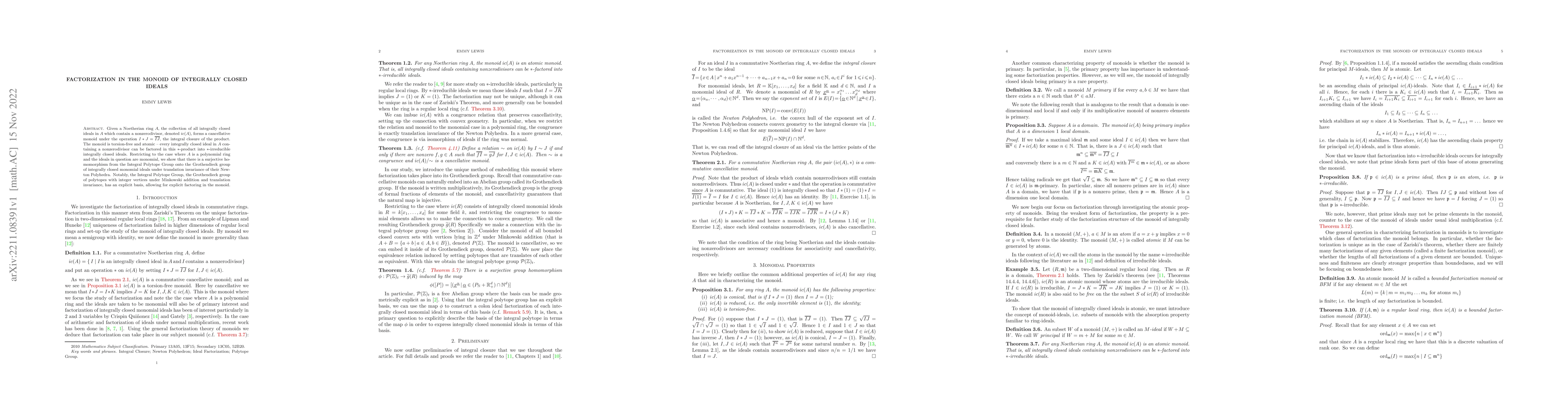 This paper studies factorization within the monoid of integrally closed ideals in a Noetherian ring, showing it is torsion-free and atomic. For monomial ideals in polynomial rings, it demonstrates a surjective homomorphism from the Integral Polytope Group to the Grothendieck group of these ideals, utilizing the translation invariance of their Newton Polyhedra.