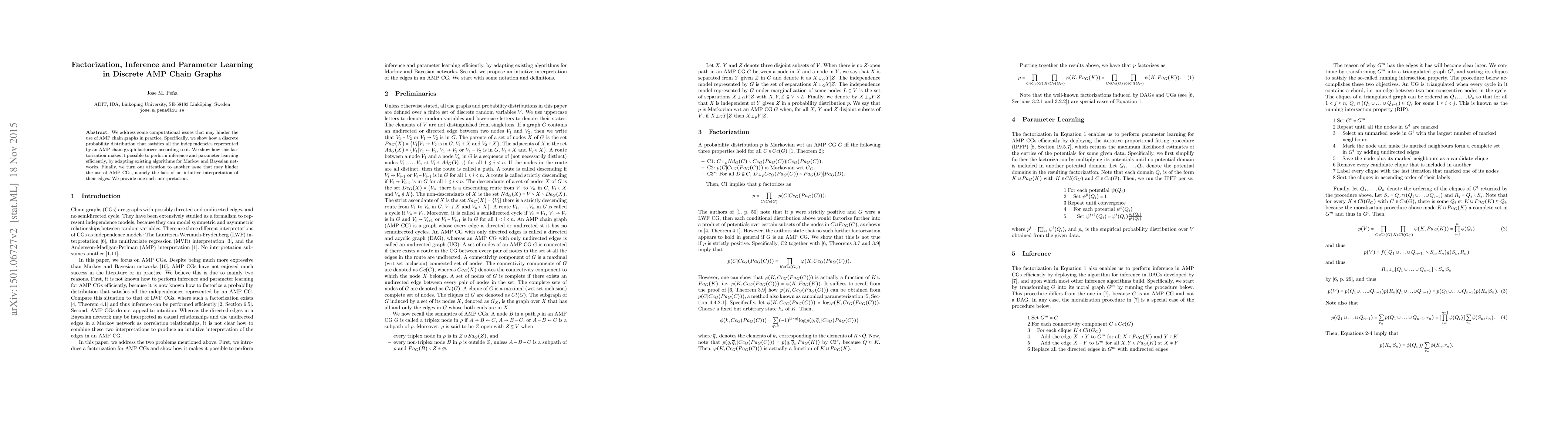 We address some computational issues that may hinder the use of AMP chain graphs in practice. Specifically, we show how a discrete probability distribution that satisfies all the independencies represented by an AMP chain graph factorizes according to it. We show how this factorization makes it possible to perform inference and parameter learning efficiently, by adapting existing algorithms for Markov and Bayesian networks. Finally, we turn our attention to another issue that may hinder the use of AMP CGs, namely the lack of an intuitive interpretation of their edges. We provide one such interpretation.