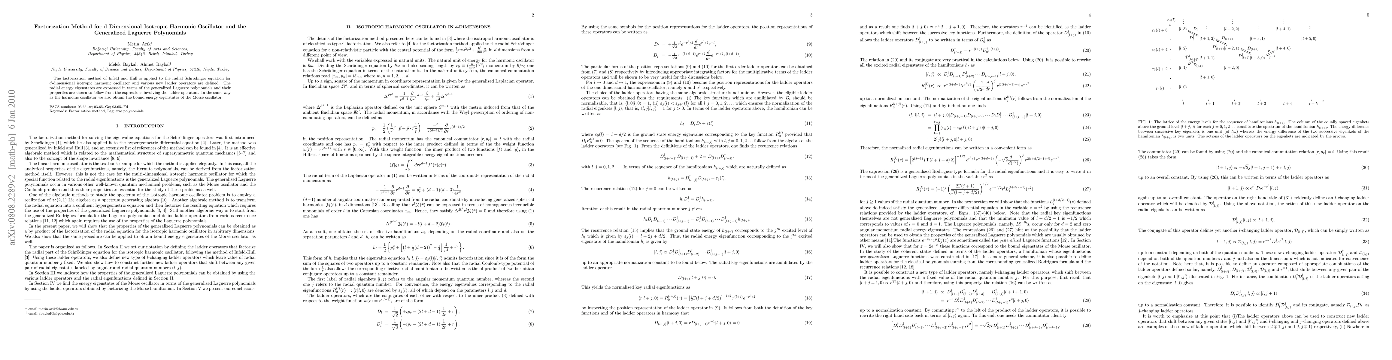 This paper applies the Infeld and Hull factorization method to the $d$-dimensional isotropic harmonic oscillator, defining ladder operators and expressing radial energy eigenstates in terms of generalized Laguerre polynomials. It also extends the approach to derive bound energy eigenstates for the Morse oscillator.