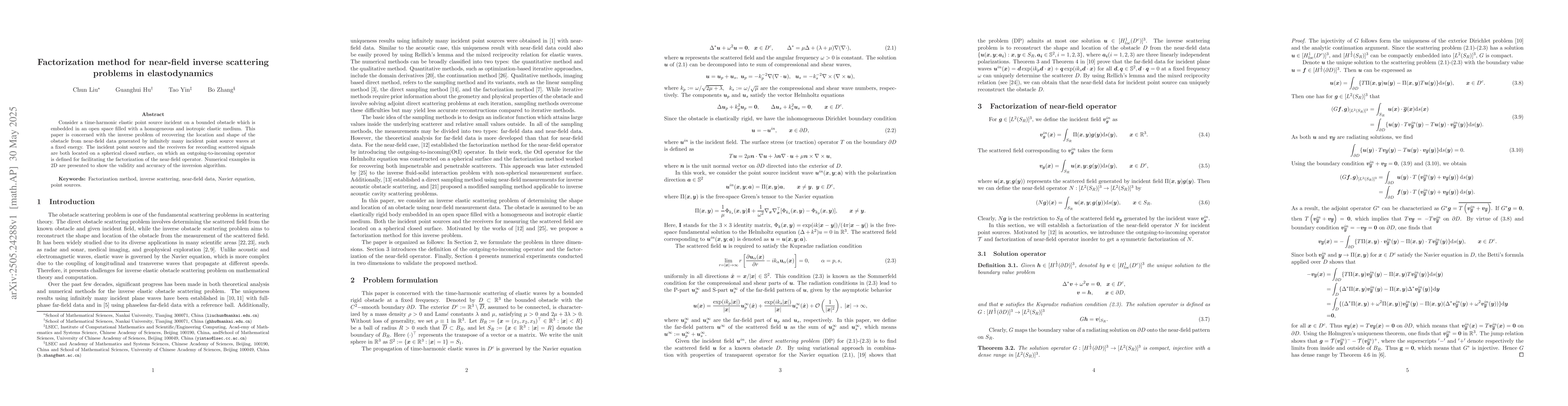 The main technical contribution is the development and validation of a factorization method for near-field inverse scattering problems in elastodynamics, utilizing an outgoing-to-incoming operator on a spherical surface.