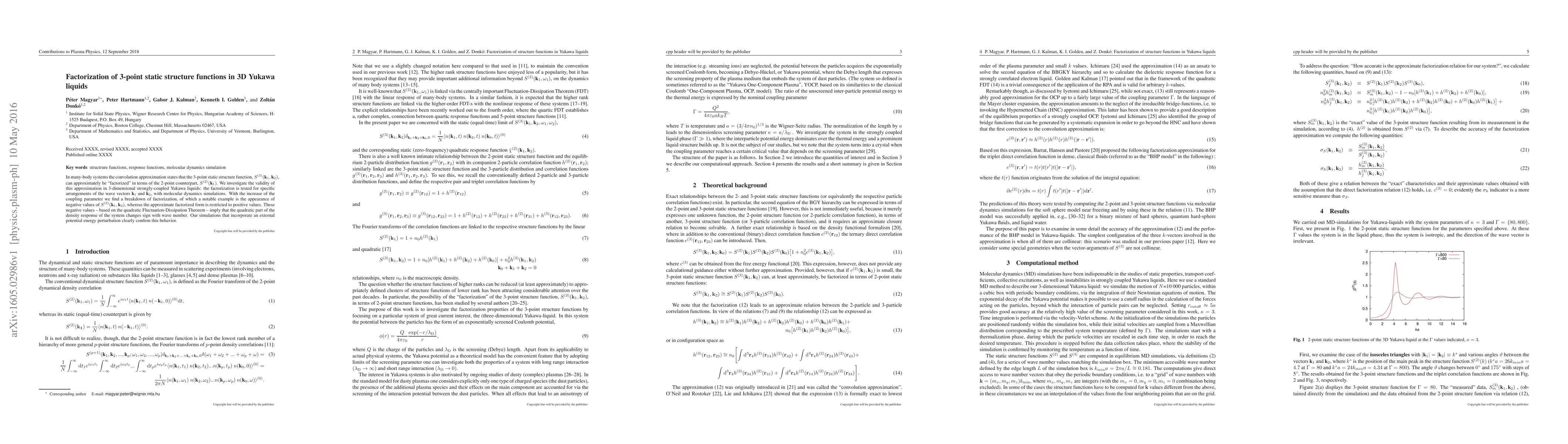 This paper examines the factorization of 3-point static structure functions in 3D Yukawa liquids using molecular dynamics simulations. It finds that the factorization approximation breaks down with increased coupling, evidenced by the appearance of negative values in $S^{(3)}(\textbf{k}_{1},\textbf{k}_{2})$, which indicates a change in the sign of the density response's quadratic part.