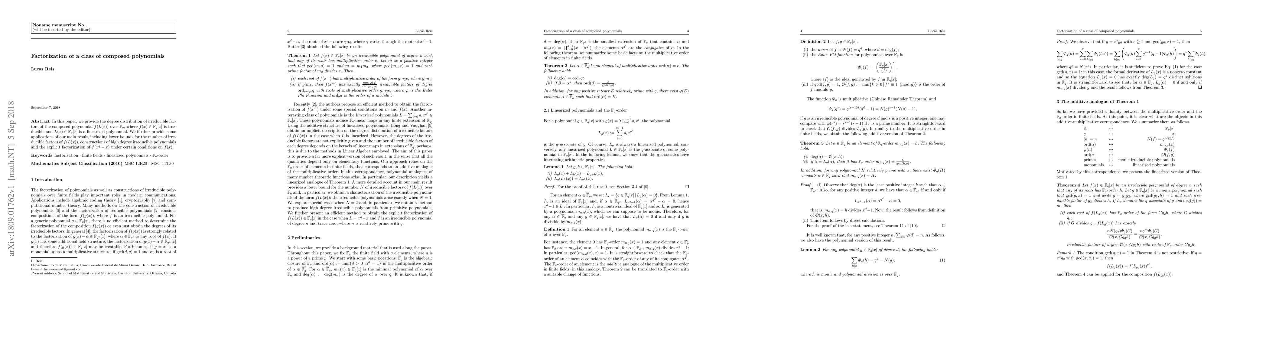 In this paper, we provide the degree distribution of irreducible factors of the composed polynomial $f(L(x))$ over $\mathbb F_q$, where $f(x)\in \mathbb F_q[x]$ is irreducible and $L(x)\in \mathbb F_q[x]$ is a linearized polynomial. We further provide some applications of our main result, including lower bounds for the number of irreducible factors of $f(L(x))$, constructions of high degree irreducible polynomials and the explicit factorization of $f(x^q-x)$ under certain conditions on $f(x)$.