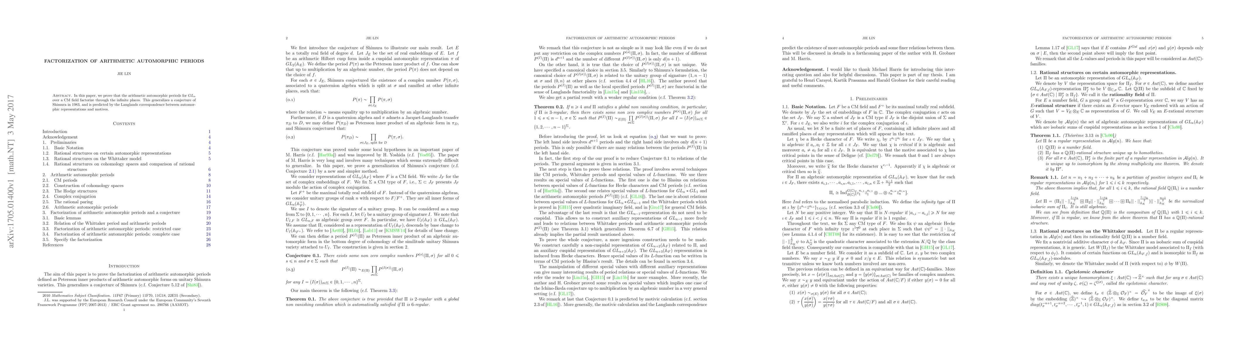 This paper proves that arithmetic automorphic periods for $GL_{n}$ over CM fields factorize through infinite places, generalizing a 1983 Shimura conjecture and aligning with the Langlands correspondence.