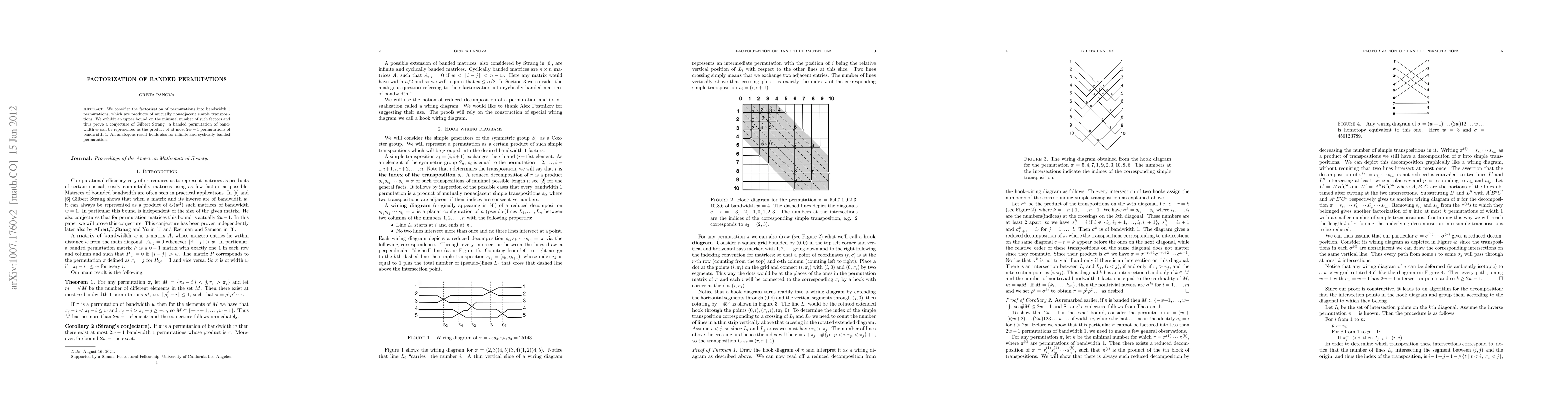 This paper establishes an upper bound on the minimal number of bandwidth 1 permutations needed to factorize banded permutations, proving Gilbert Strang's conjecture that a banded permutation of bandwidth $w$ can be represented by at most $2w-1$ such permutations. The result also extends to infinite and cyclically banded permutations.