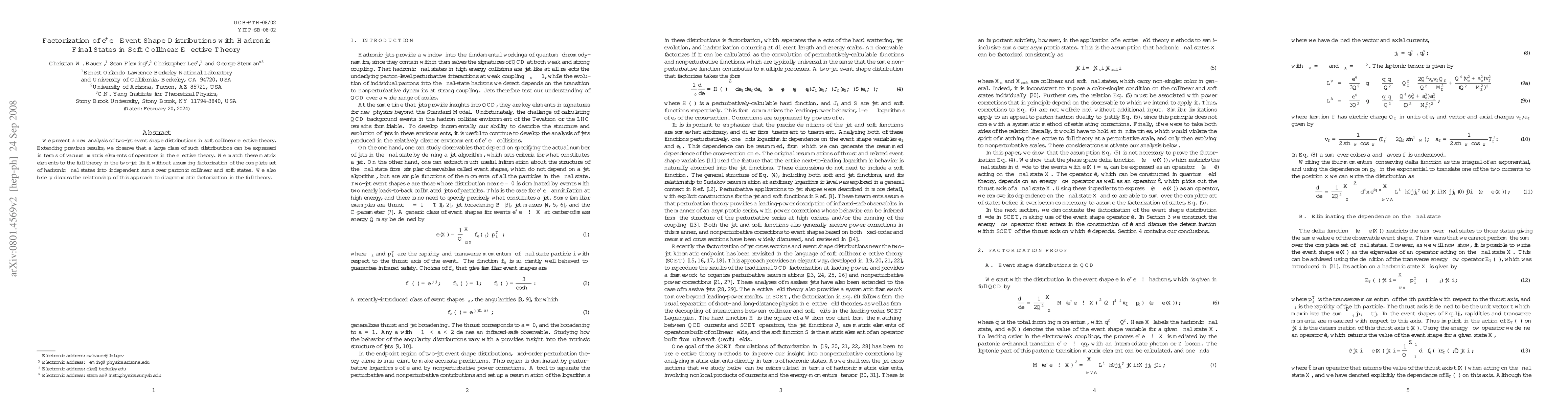 This research presents a novel analysis of e+e- two-jet event shape distributions using Soft Collinear Effective Theory (SCET). It reveals that numerous such distributions can be articulated via vacuum matrix elements of SCET operators, without assuming full theory factorization for hadronic final states. The method matches SCET matrix elements to the full theory in the two-jet limit, also linking it to diagrammatic factorization.