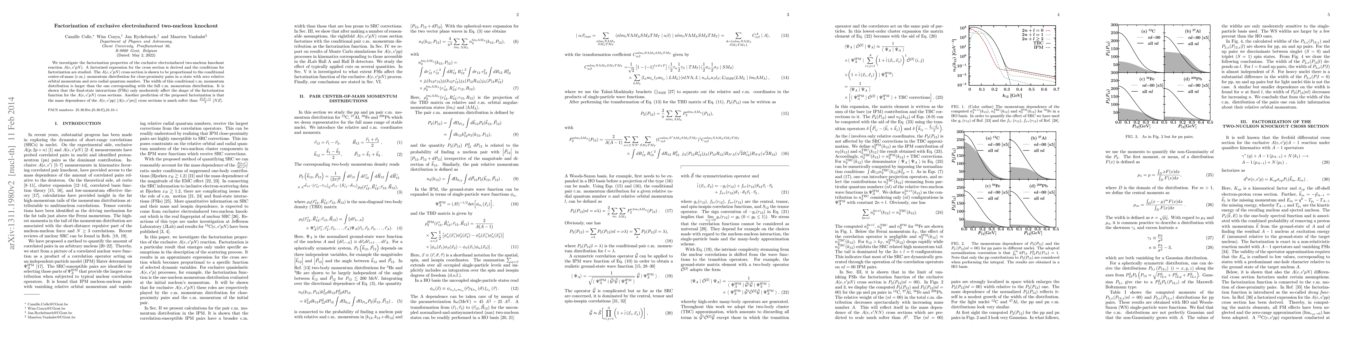 This paper explores the factorization properties of the exclusive electroinduced two-nucleon knockout reaction, deriving a factorized expression for the cross section and demonstrating that it correlates with the conditional center-of-mass momentum distribution for nucleon pairs. The study finds that final-state interactions have a moderate effect on the factorization function and predicts a softer mass dependence for the reaction compared to simple theoretical expectations.