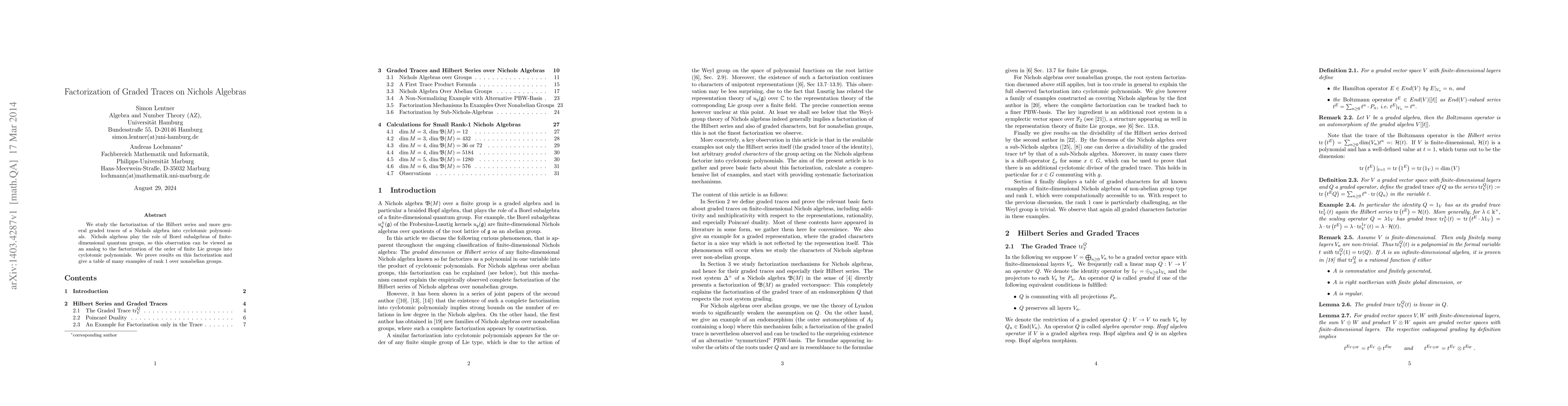 We study the factorization of the Hilbert series and more general graded traces of a Nichols algebra into cyclotomic polynomials. Nichols algebras play the role of Borel subalgebras of finite-dimensional quantum groups, so this observation can be viewed as an analog to the factorization of the order of finite Lie groups into cyclotomic polynomials. We prove results on this factorization and give a table of many examples of rank 1 over nonabelian groups.