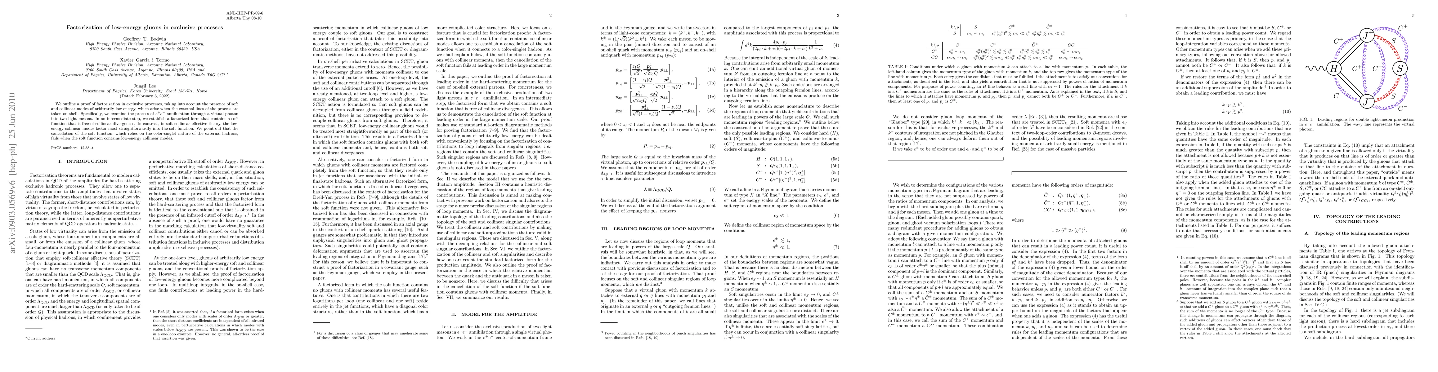 We outline a proof of factorization in exclusive processes, taking into account the presence of soft and collinear modes of arbitrarily low energy, which arise when the external lines of the process are taken on shell. Specifically, we examine the process of e^+e^- annihilation through a virtual photon into two light mesons. In an intermediate step, we establish a factorized form that contains a soft function that is free of collinear divergences. In contrast, in soft-collinear effective theory, the low-energy collinear modes factor most straightforwardly into the soft function. We point out that the cancellation of the soft function, which relies on the color-singlet nature of the external hadrons, fails when the soft function contains low-energy collinear modes.