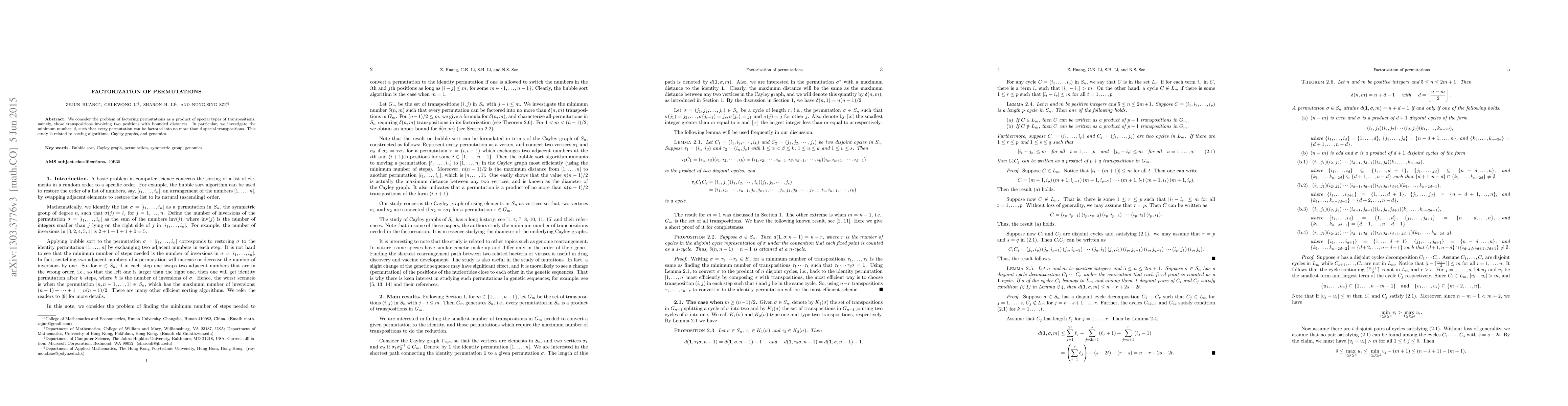 We consider the problem of factoring permutations as a product of special types of transpositions, namely, those transpositions involving two positions with bounded distances. In particular, we investigate the minimum number, $\delta$, such that every permutation can be factored into no more than $\delta$ special transpositions. This study is related to sorting algorithms, Cayley graphs, and genomics.