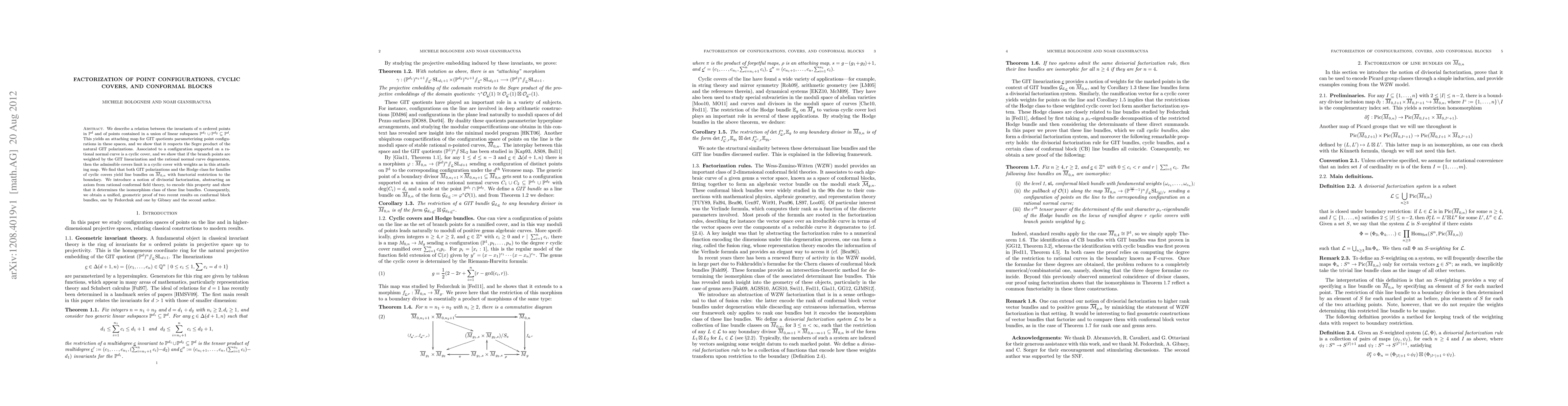Researchers connect point configurations in projective spaces to cyclic covers and conformal blocks, introducing a divisorial factorization that determines the isomorphism class of line bundles on moduli spaces.