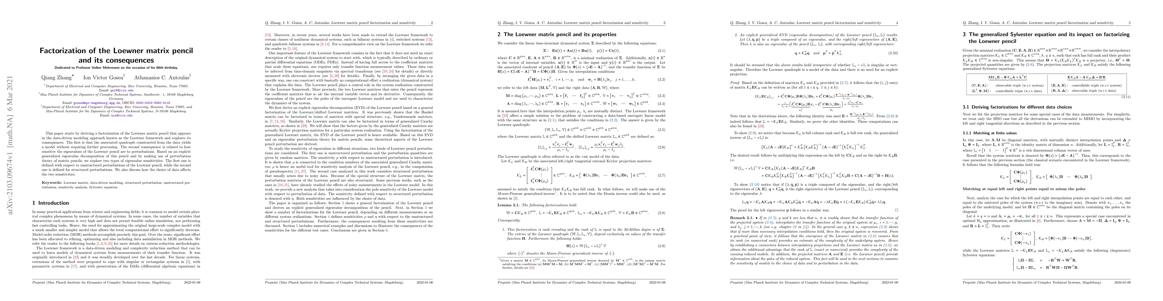 This paper derives a factorization of the Loewner matrix pencil, revealing that it directly constructs a usable model without additional processing. It also investigates the sensitivity of the Loewner pencil's eigenvalues to both unstructured and structured perturbations, discussing how data choice influences these sensitivities.