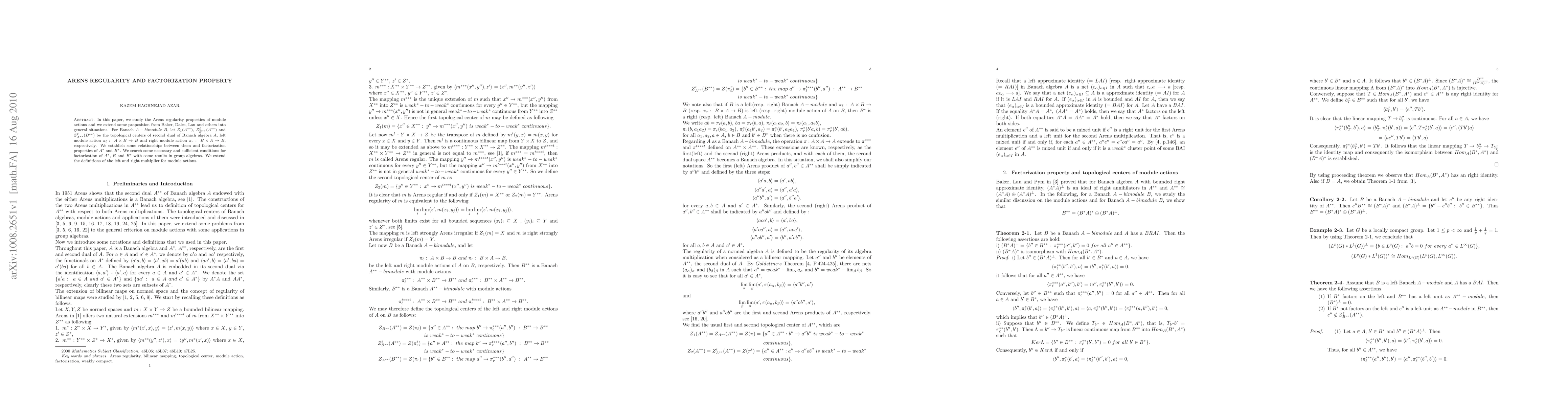 This paper investigates module actions in Banach algebras, focusing on factorization properties and Arens regularity, with implications for multiplier definitions and group algebra applications.