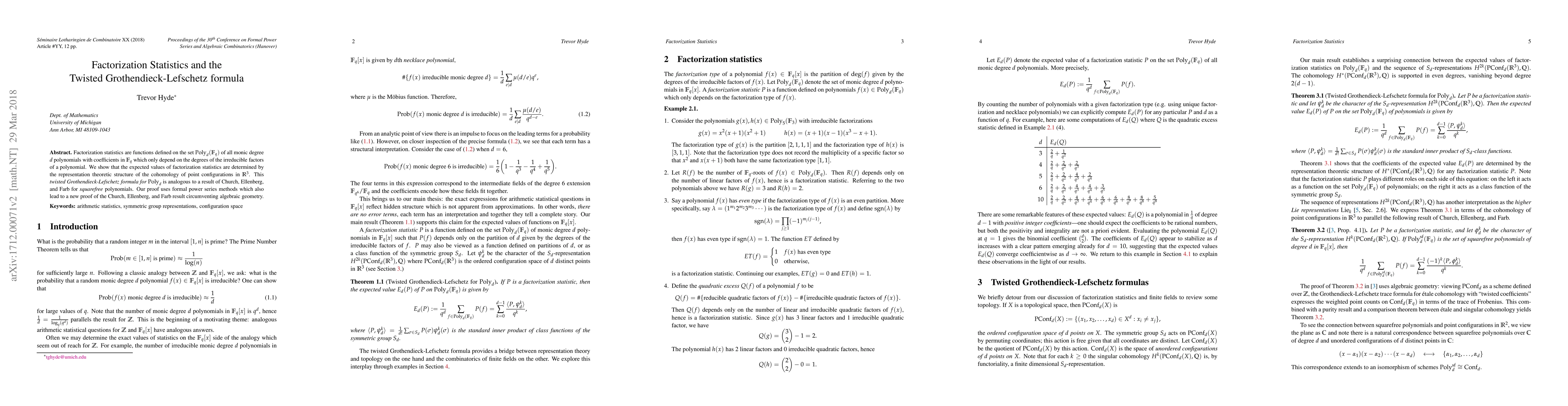 We announce recent results on a connection between factorization statistics of polynomials over a finite field and the structure of the cohomology of configurations in $\mathbb{R}^3$ as a representation of the symmetric group. This connection parallels a result of Church, Ellenberg, and Farb relating factorization statistics of squarefree polynomials and the cohomology of configurations in $\mathbb{R}^2$.