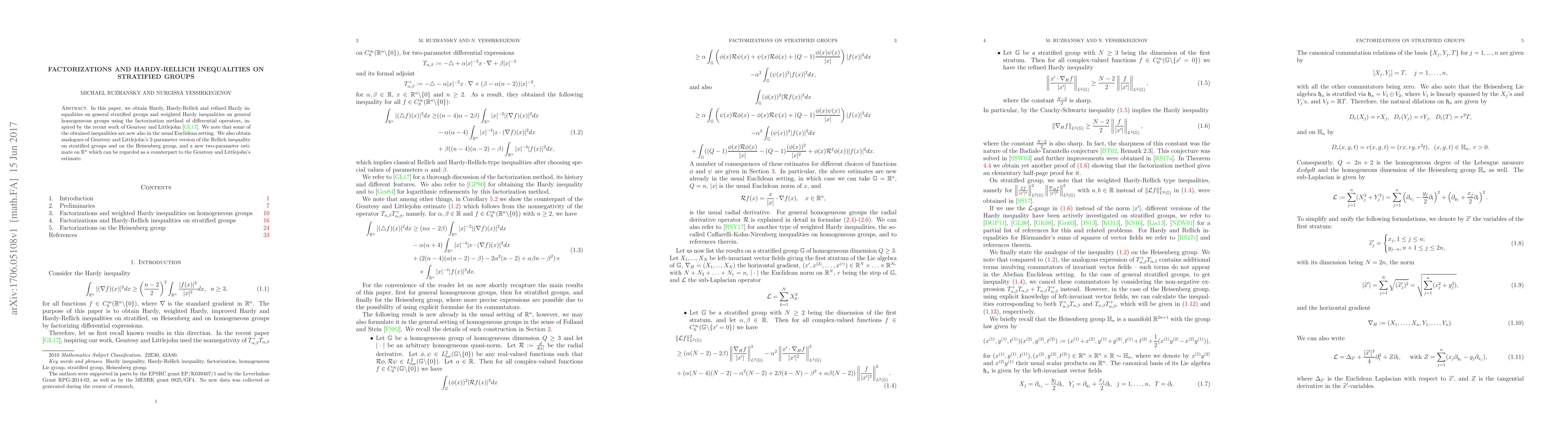 This paper derives Hardy, Hardy-Rellich, and refined Hardy inequalities on stratified groups using a factorization method, extending results to the Euclidean setting. It also introduces new two-parameter estimates on $\mathbb{R}^{n}$ and analogues of the Rellich inequality on stratified groups and the Heisenberg group.