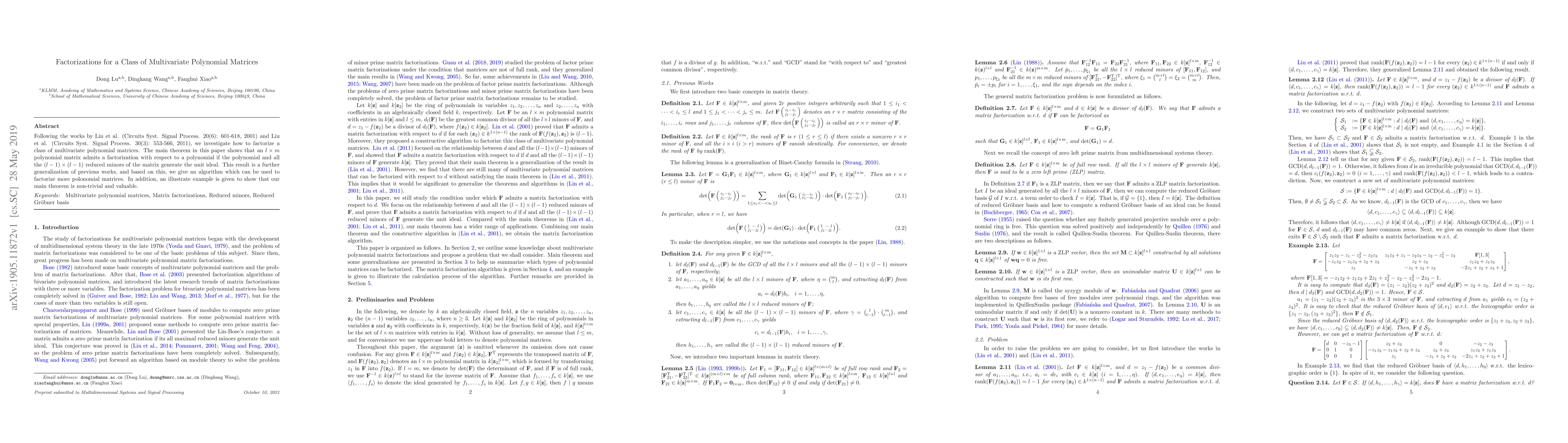 The research extends and generalizes previous works by Lin et al. (2001) and Liu et al. (2011), introducing a new theorem and algorithm for factorizing multivariate polynomial matrices based on the generation of the unit ideal by a polynomial and reduced minors of the matrix.