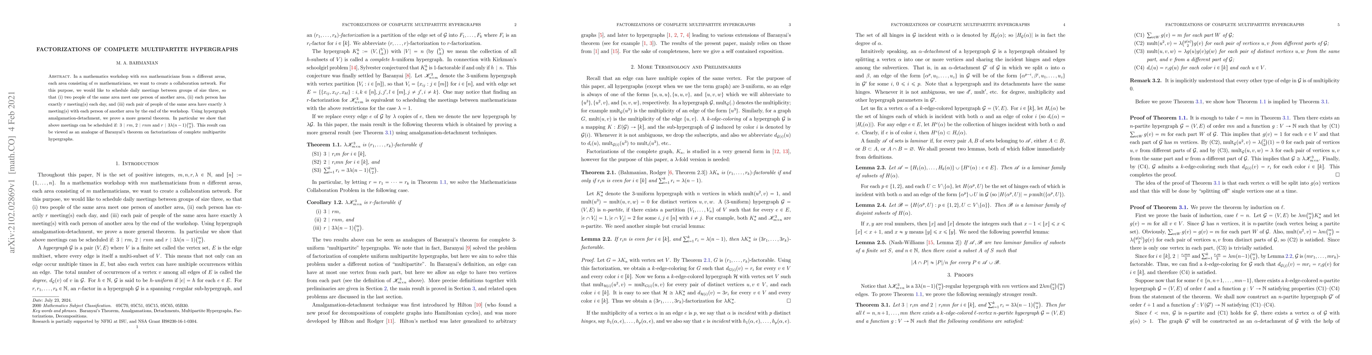 Researchers develop a method for scheduling meetings among mathematicians from different areas to meet specific criteria, showing that factorizations of complete multipartite hypergraphs can be achieved under certain conditions. The findings provide an analogue to Baranyai's theorem.