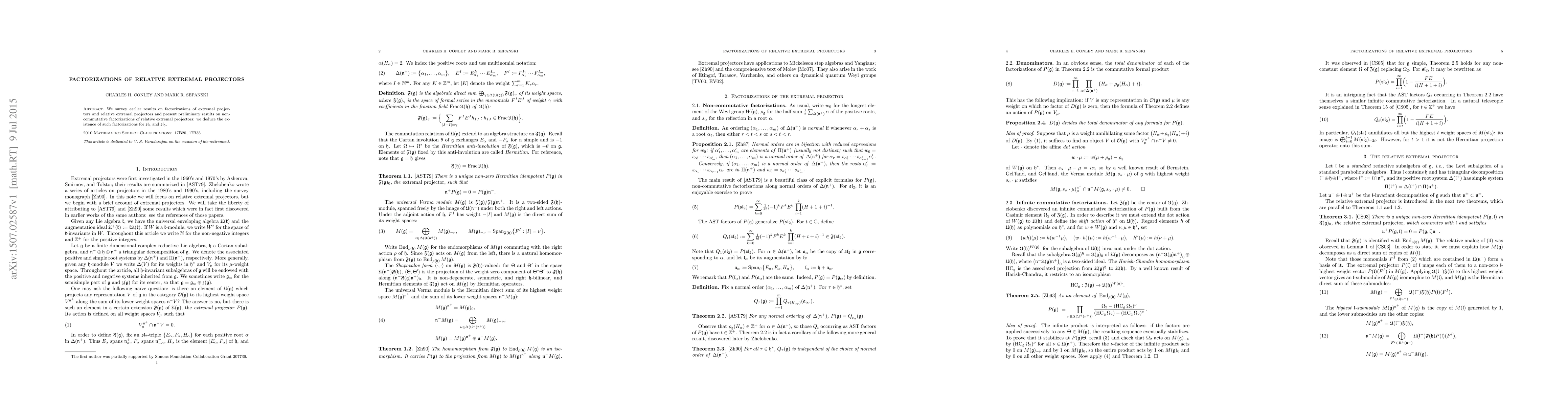 This paper surveys previous findings on factorizations of extremal projectors and introduces preliminary results on non-commutative factorizations of relative extremal projectors, specifically demonstrating their existence in the cases of sl(4) and sl(5).