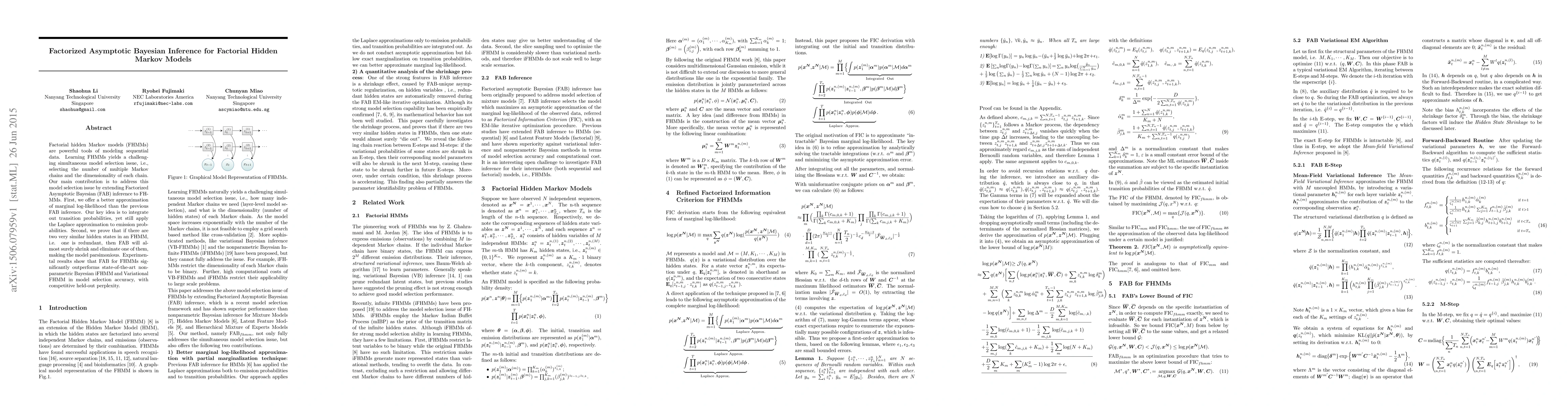 This paper presents an enhanced Factorized Asymptotic Bayesian (FAB) inference method for Factorial Hidden Markov Models (FHMMs), improving model selection accuracy by shrinking redundant hidden states. Experimental results demonstrate superior performance compared to other FHMM methods in model selection and held-out perplexity.