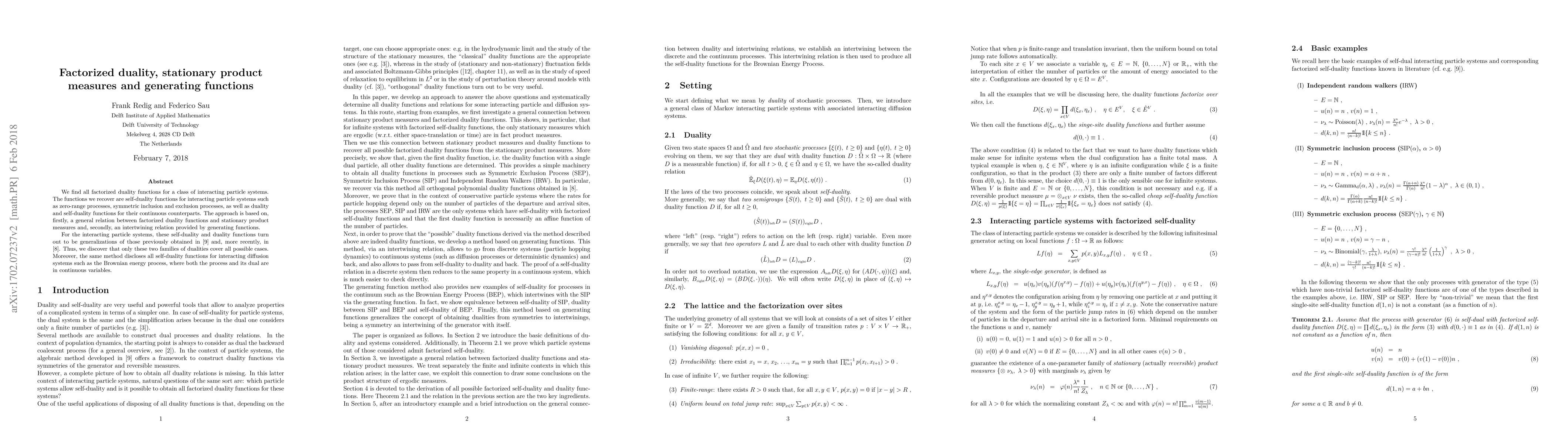 This paper identifies all factorized duality functions for interacting particle systems and their continuous counterparts, revealing that only two families of dualities cover all cases. The approach leverages a general relation between factorized duality functions and stationary product measures, along with generating functions for intertwining relations.