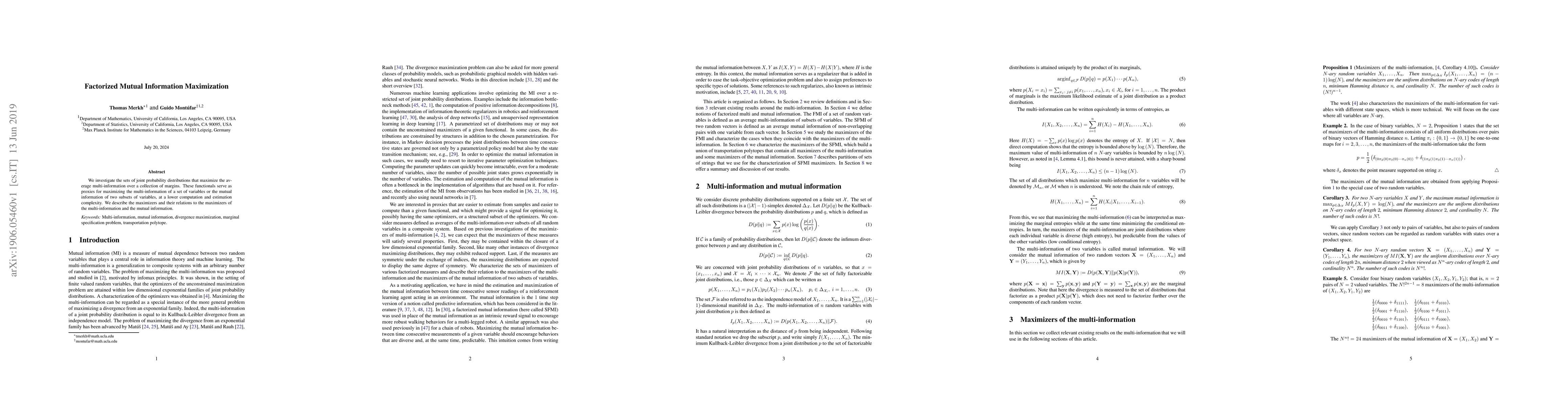 They found that maximizers of joint probability distributions relate to those of multiinformation and mutual information, providing a more efficient approach to estimating these quantities.