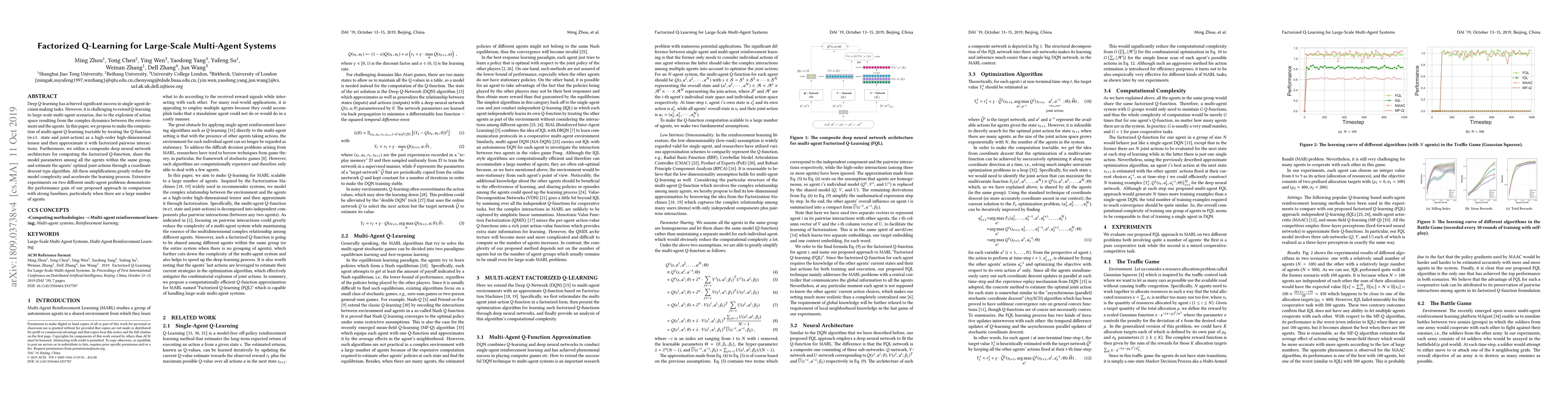 This paper proposes a factorized Q-learning approach for large-scale multi-agent systems, approximating the high-dimensional Q-function with pairwise interactions and using a shared neural network to reduce complexity. The method shows significant performance improvements over baselines, especially with many agents.