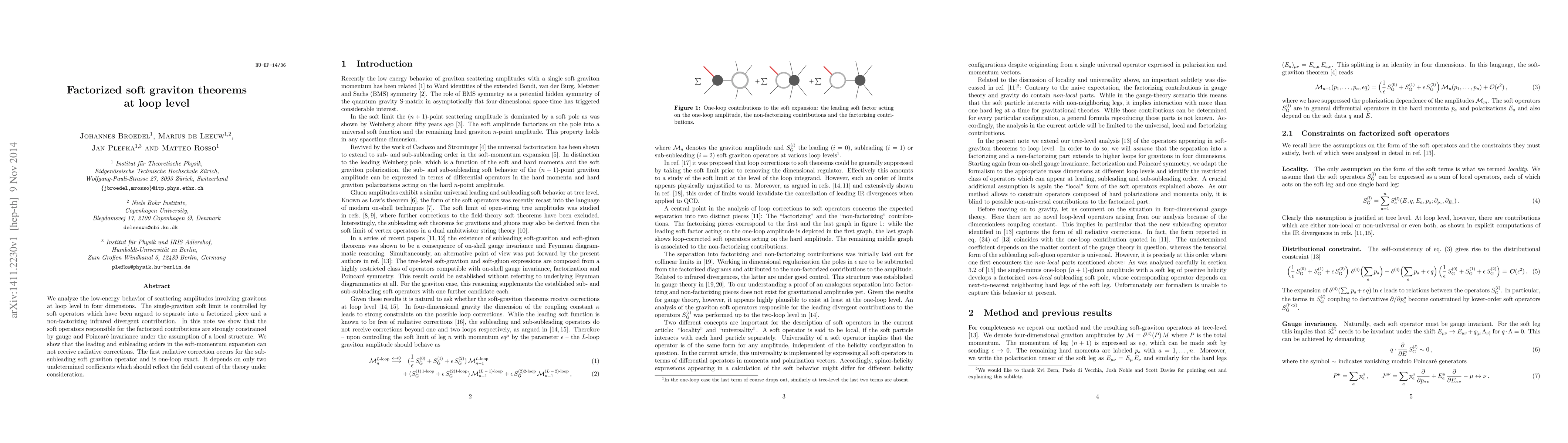 Research paper analyzes low-energy behavior of scattering amplitudes involving gravitons at loop level, finding that soft operators are strongly constrained by gauge and Poincare invariance, with radiative corrections only occurring for sub-subleading soft graviton operators.