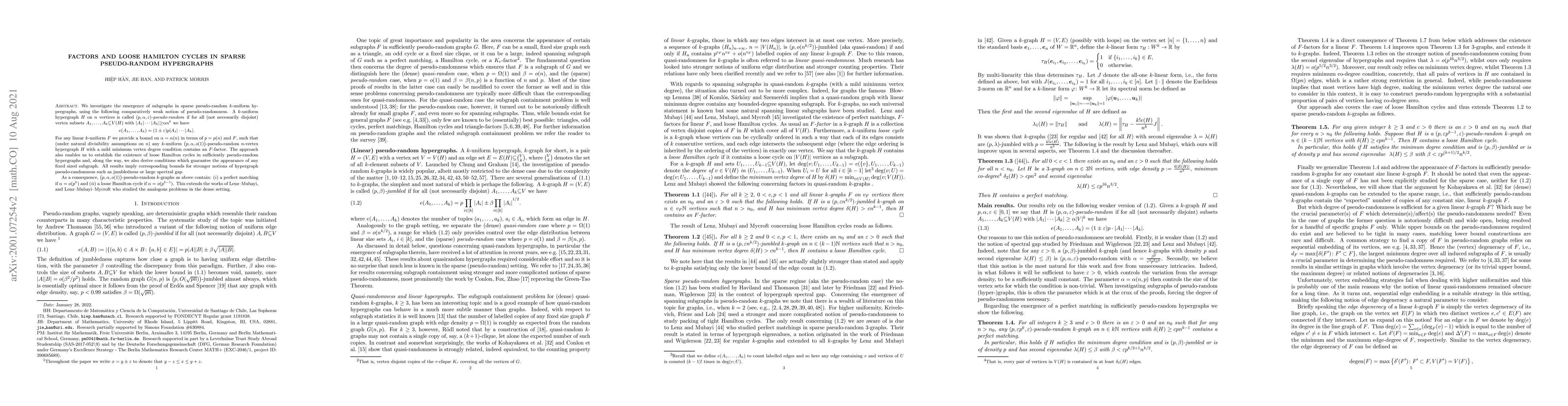 This paper explores the existence of spanning structures like factors and loose Hamilton cycles in sparse pseudo-random $k$-uniform hypergraphs, establishing bounds for their emergence under mild conditions. It extends previous results for dense hypergraphs to the sparse pseudo-random setting.