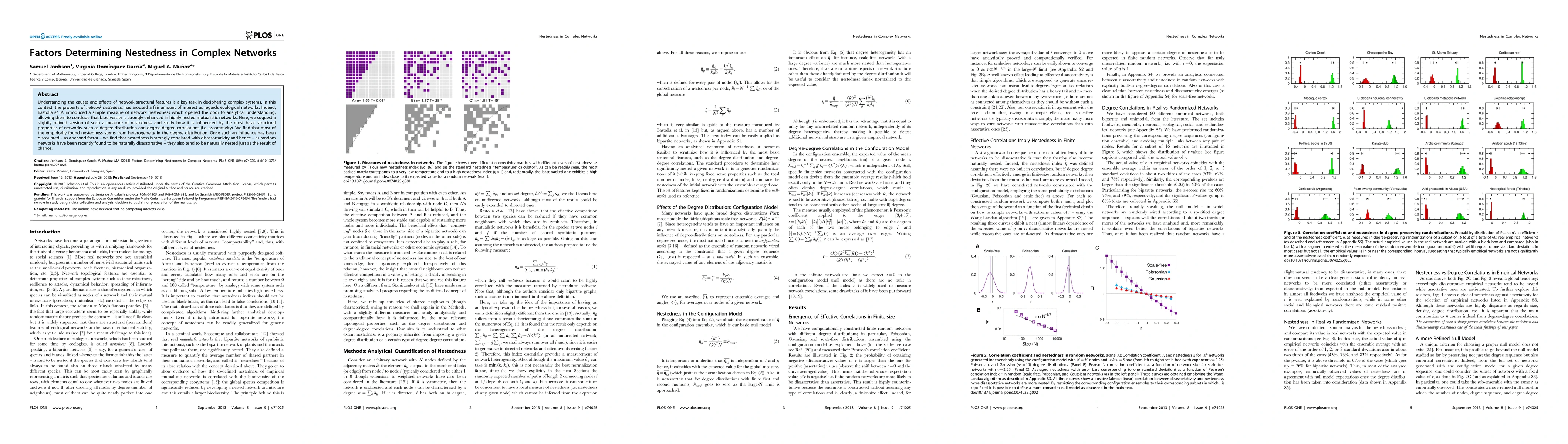 This paper refines a measure of network nestedness and investigates its determinants in complex networks, finding that degree heterogeneity strongly influences nestedness. After accounting for this, nestedness correlates strongly with disassortativity, suggesting that random networks tend to be naturally nested due to their inherent disassortative nature.