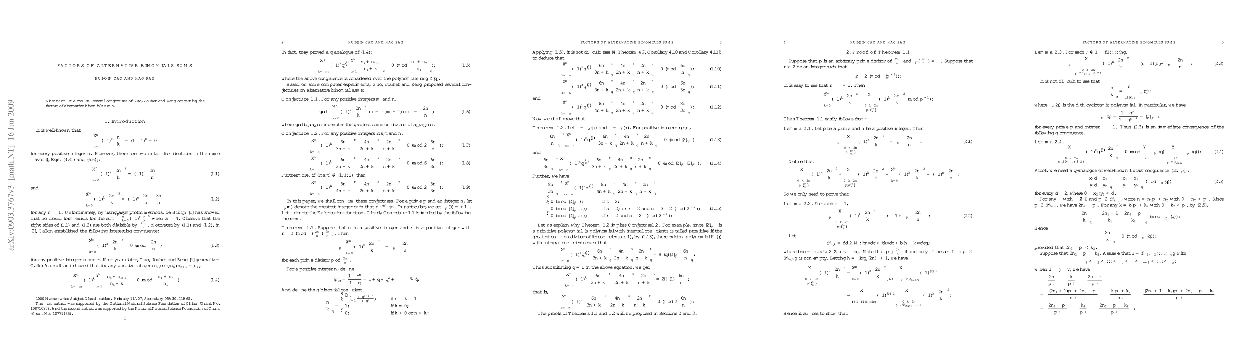Summary: This paper confirms conjectures regarding the factors of alternative binomial sums, contributing to the understanding of their underlying structures. The findings provide insights into the mathematical properties of these binomial sums.