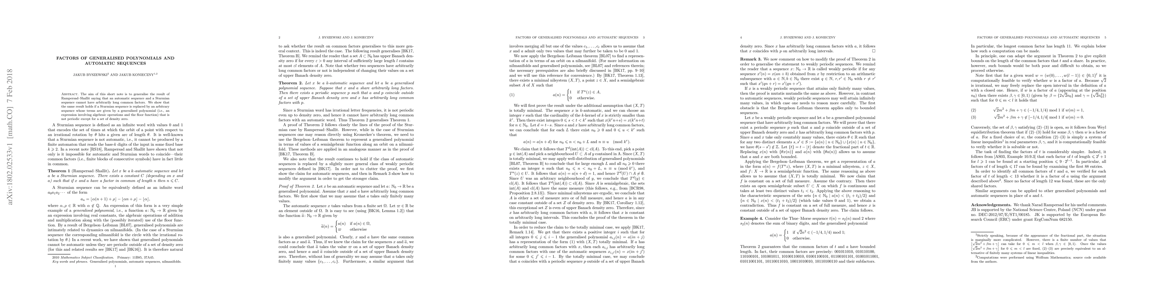 The aim of this short note is to generalise the result of Rampersad--Shallit saying that an automatic sequence and a Sturmian sequence cannot have arbitrarily long common factors. We show that the same result holds if a Sturmian sequence is replaced by an arbitrary sequence whose terms are given by a generalised polynomial (i.e., an expression involving algebraic operations and the floor function) that is not periodic except for a set of density zero.