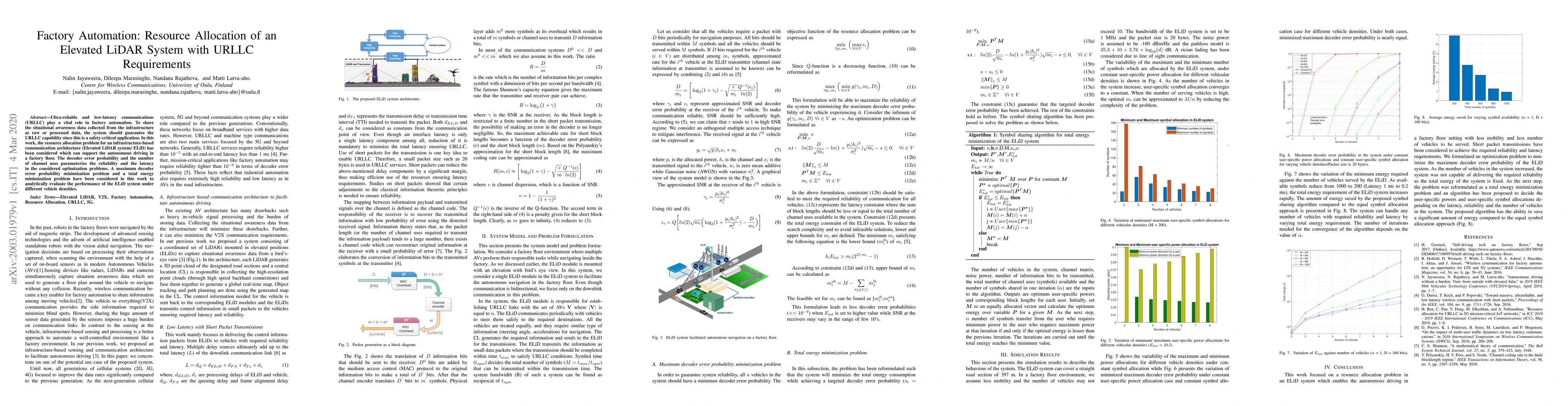 This research paper evaluates the performance of an Elevated LiDAR system for factory automation under ultra-reliable and low-latency communications requirements. It analyzes two optimization problems to minimize decoder error probability and total energy consumption.