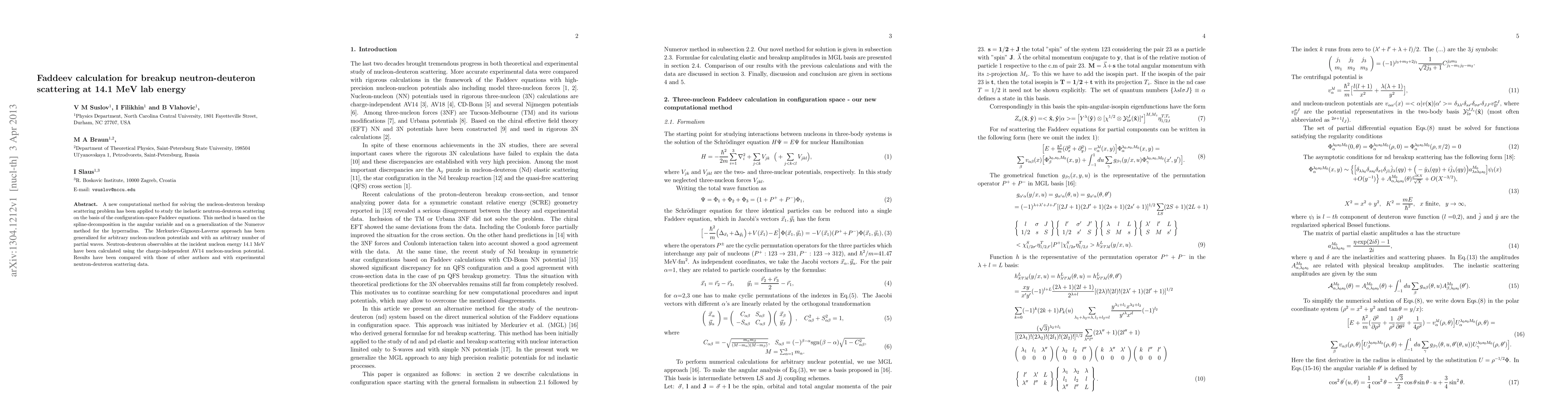This paper applies a new computational method based on the Faddeev equations and spline-decomposition to calculate neutron-deuteron breakup observables at 14.1 MeV. The results are compared with other studies and experimental data using the AV14 potential.